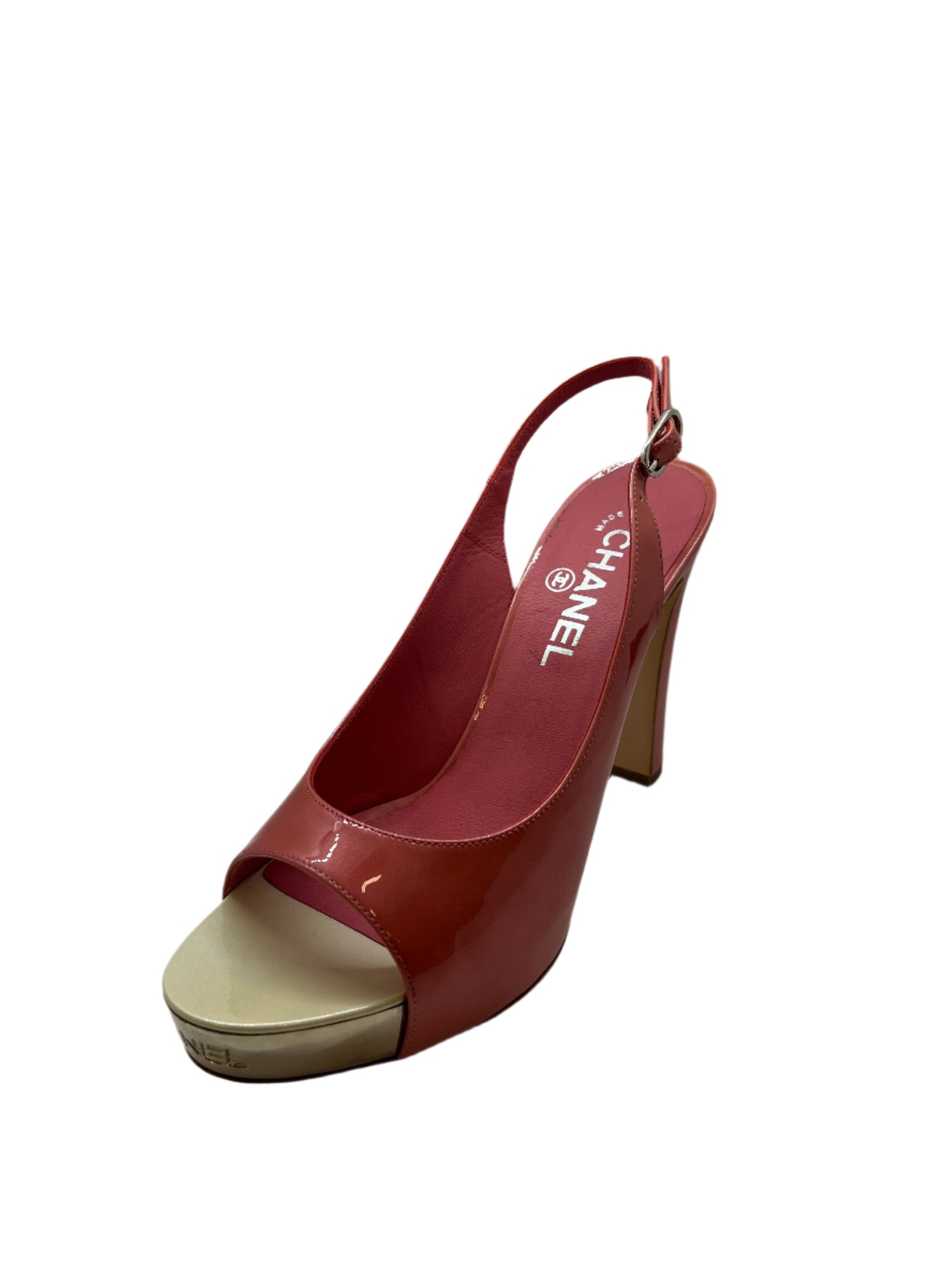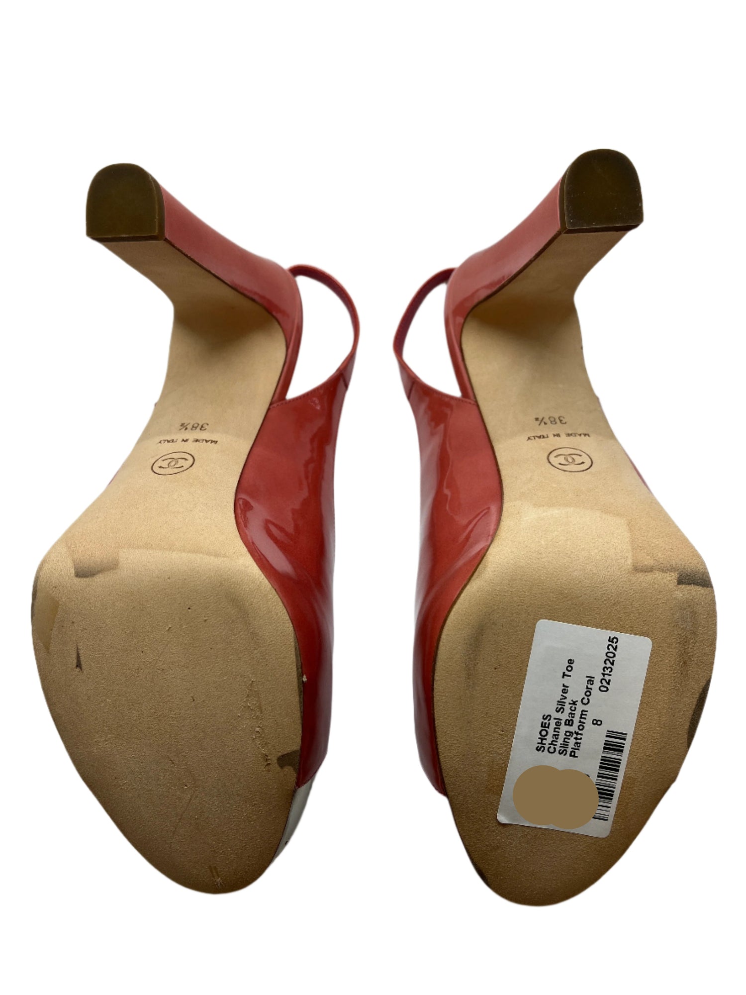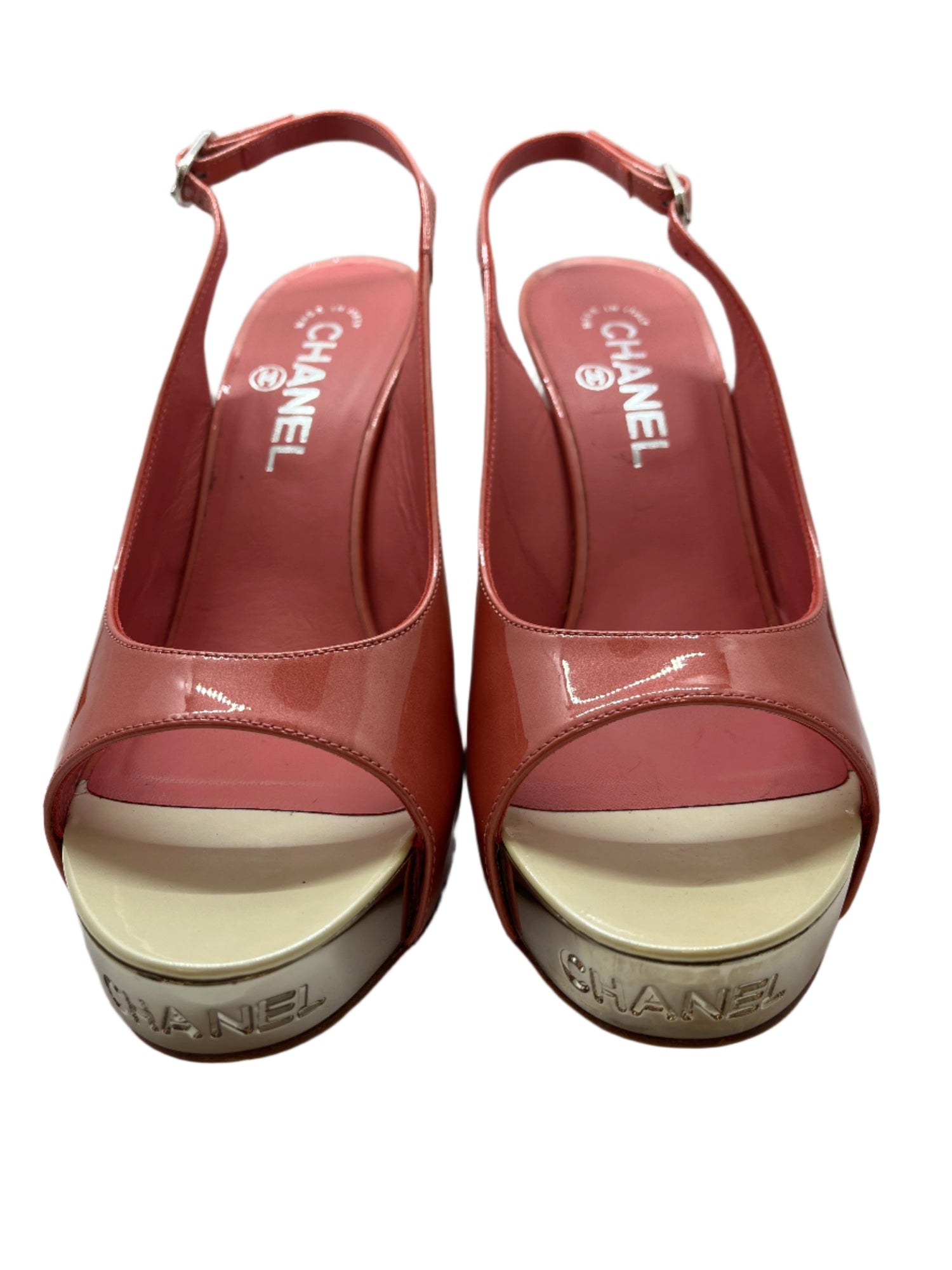 Chanel Patent Pink Slingback Platforms Size 38.5
