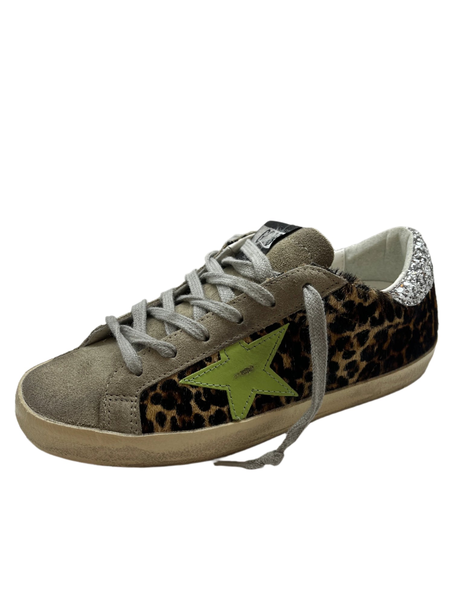 Golden Goose Suede and Cheetah Print Super Star Sneakers Size 37