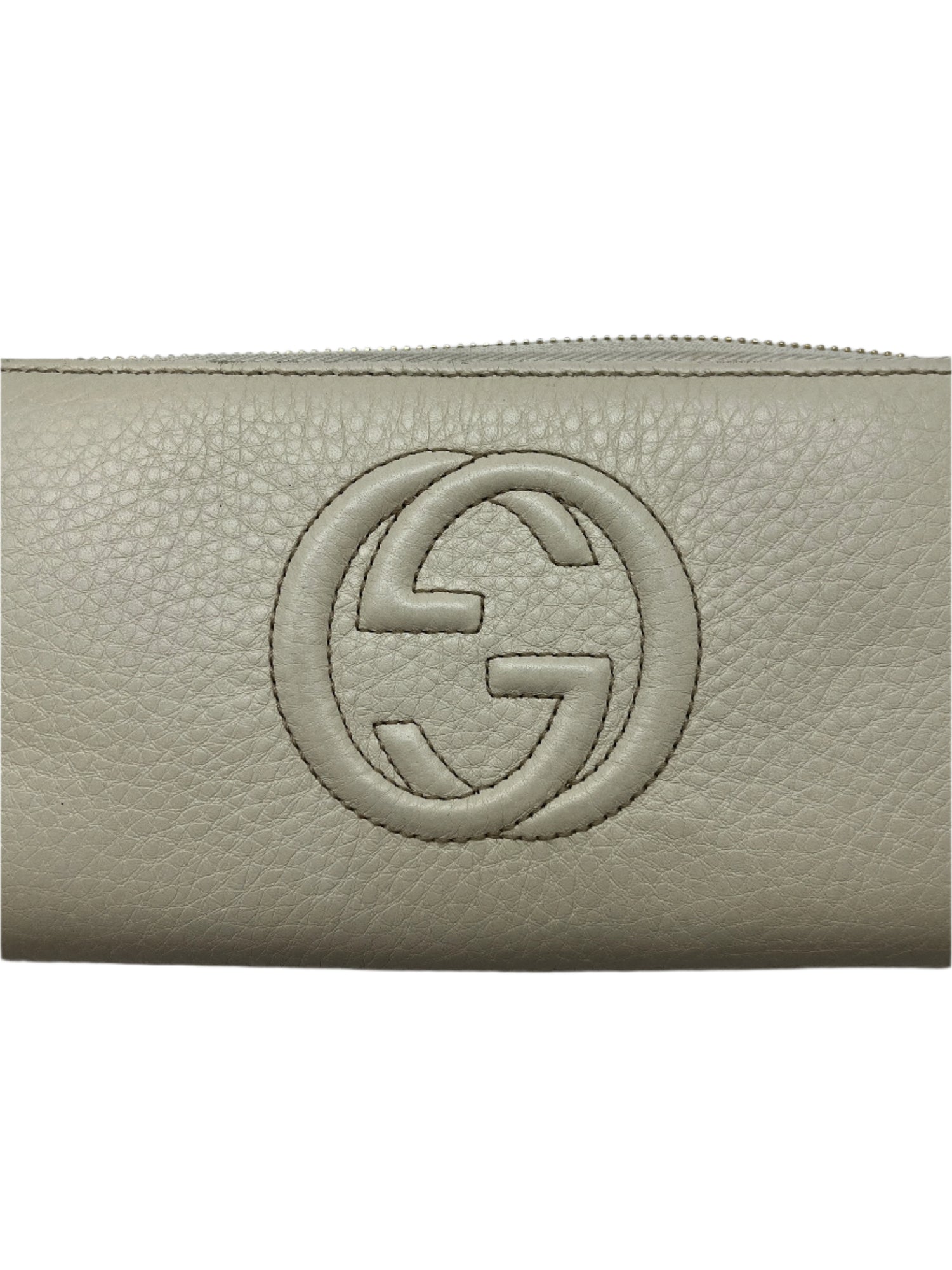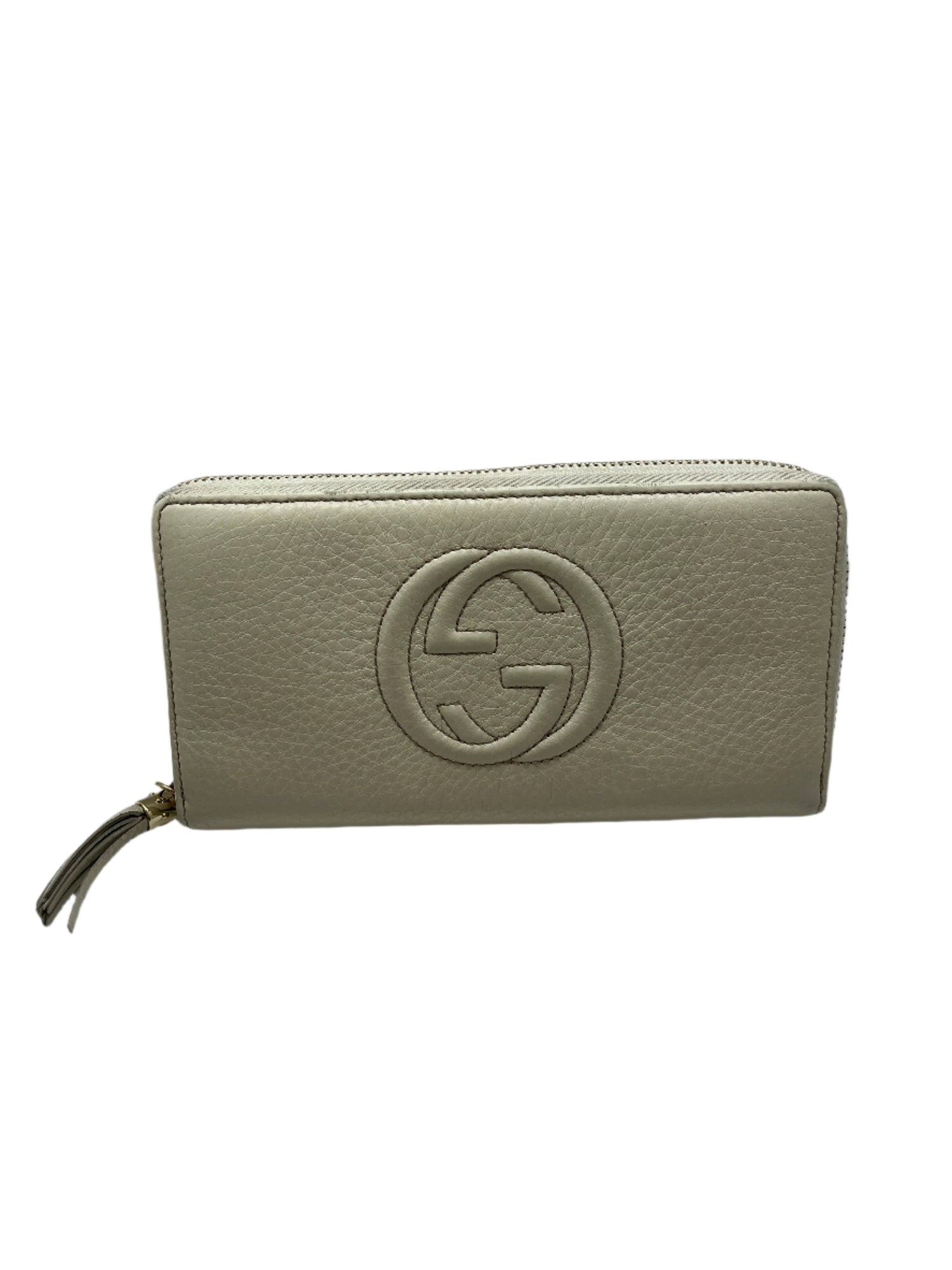 Elevate your style with this exquisite leather wallet from Gucci. Boasting a chic zip around closure, it offers both functionality and elegance with its interior zip and slip pockets. Measuring 10x19x2cm, it is the epitome of luxury and sophistication.