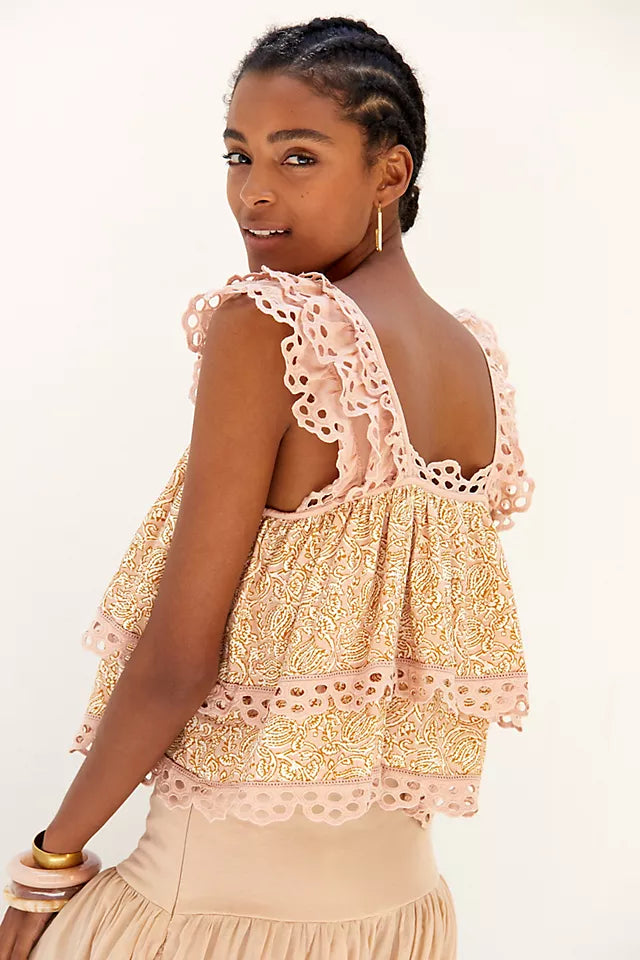 Breezy and beautifully detailed, this cotton eyelet tank by Let Me Be features a tiered swing silhouette for effortless charm. Finished with delicate embroidery and pullover styling, it’s a warm-weather essential with a feminine touch.
