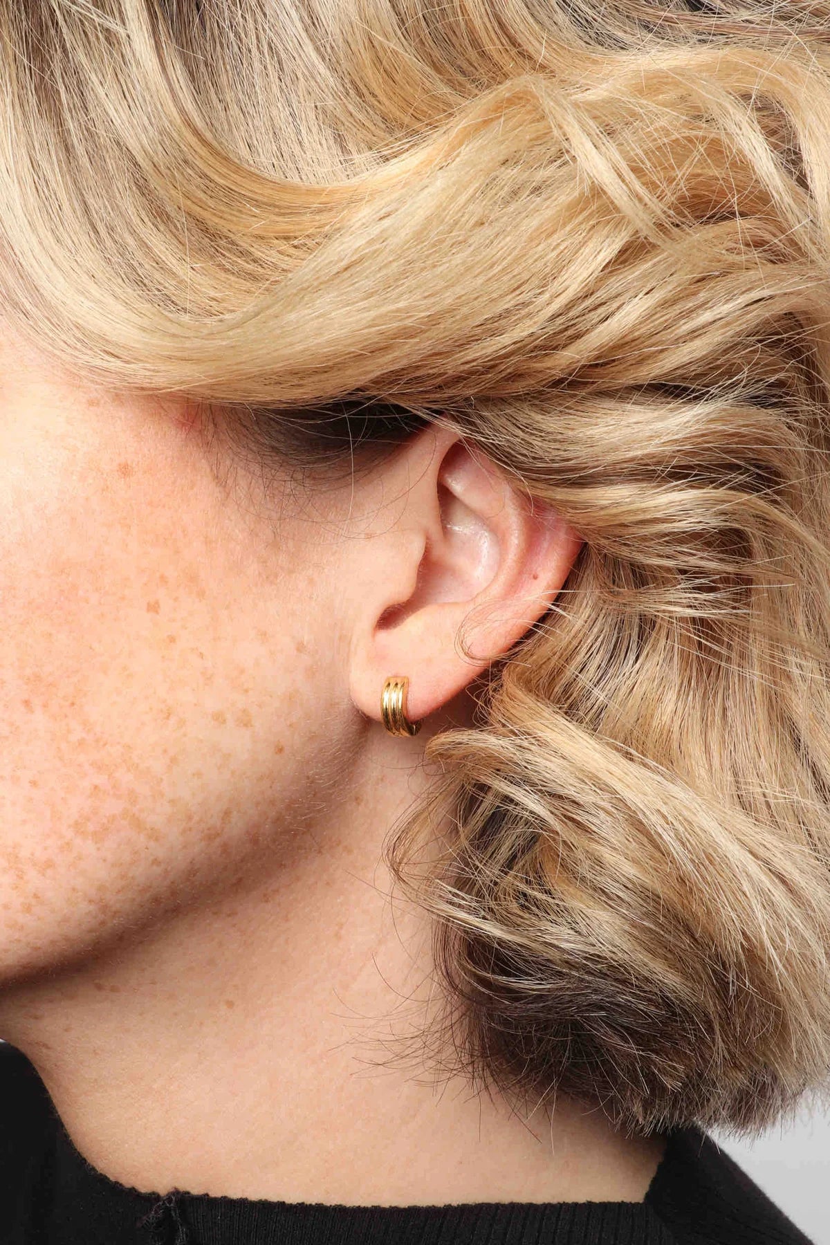 Sleek, modern, and effortlessly chic—the Marrin Costello Petra Huggies feature a triple-band design in one compact hoop. With their polished finish and secure click hinge closure, these mini huggies are perfect for everyday wear and easy stacking.