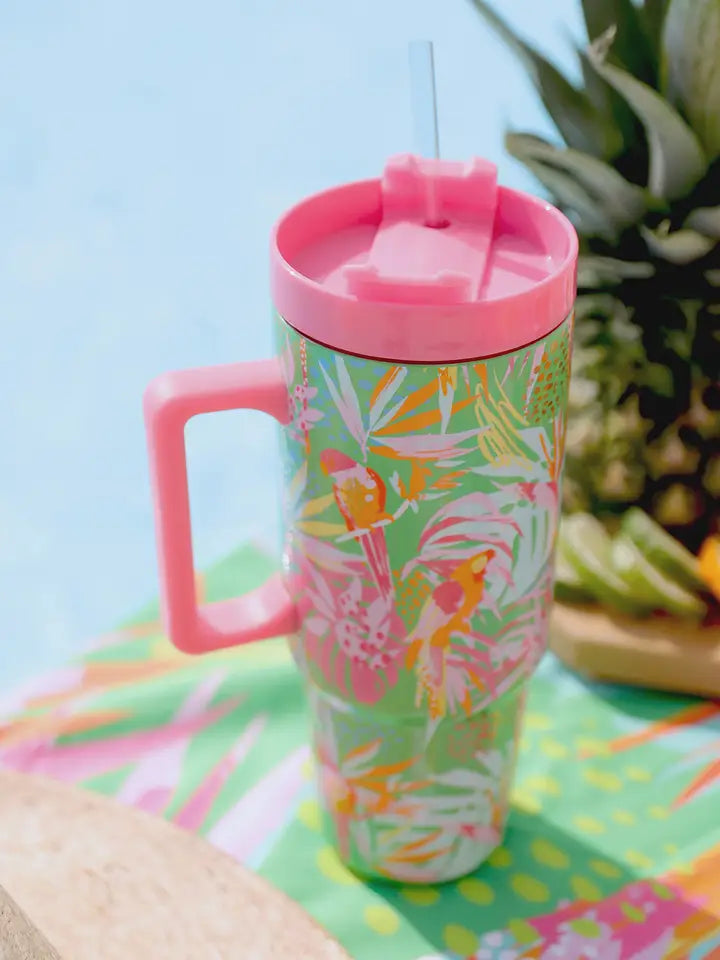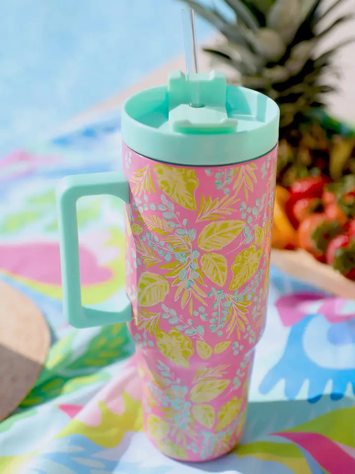 Stay hydrated in style with the Mary Square In the Trees Tumbler. This 40 oz stainless steel tumbler features a beautiful pine tree design, perfect for on-the-go adventures. Durable and sleek, it keeps your drinks at the perfect temperature, whether you're out exploring or just running errands.