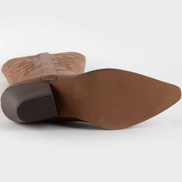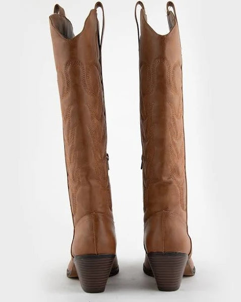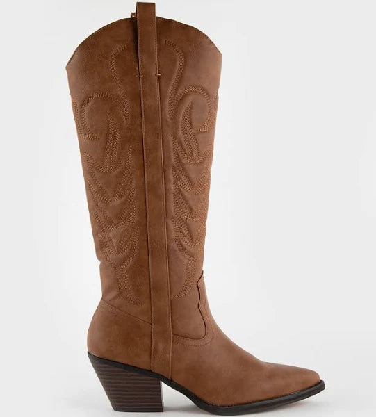 Coconuts By Matisse Dixie Pointed Toe Boot. Coconuts by Matisse Dixie Tall Western Boots. Vegan leather cowboy boots with stitch detailing. Side zipper. Pull tabs. Pointed toe. Manmade upper and outsole. Approximate heel height: 3". Imported.