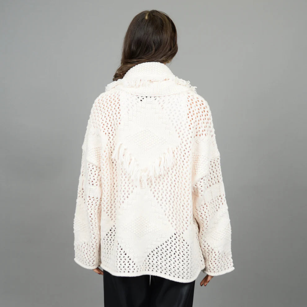 Wrap yourself in cozy elegance with the Issa Shawl Neck Robe. Crafted from a soft blend of 80% acrylic and 20% wool, this long fringe shawl robe combines warmth and style effortlessly. Perfect for layering, its timeless winter white hue adds a touch of sophistication to your cold-weather wardrobe.