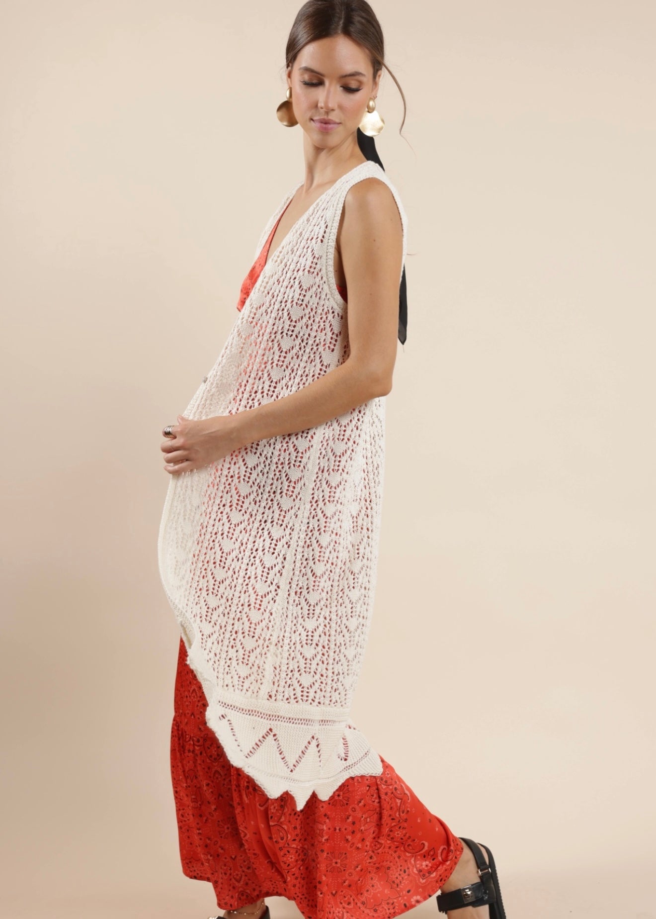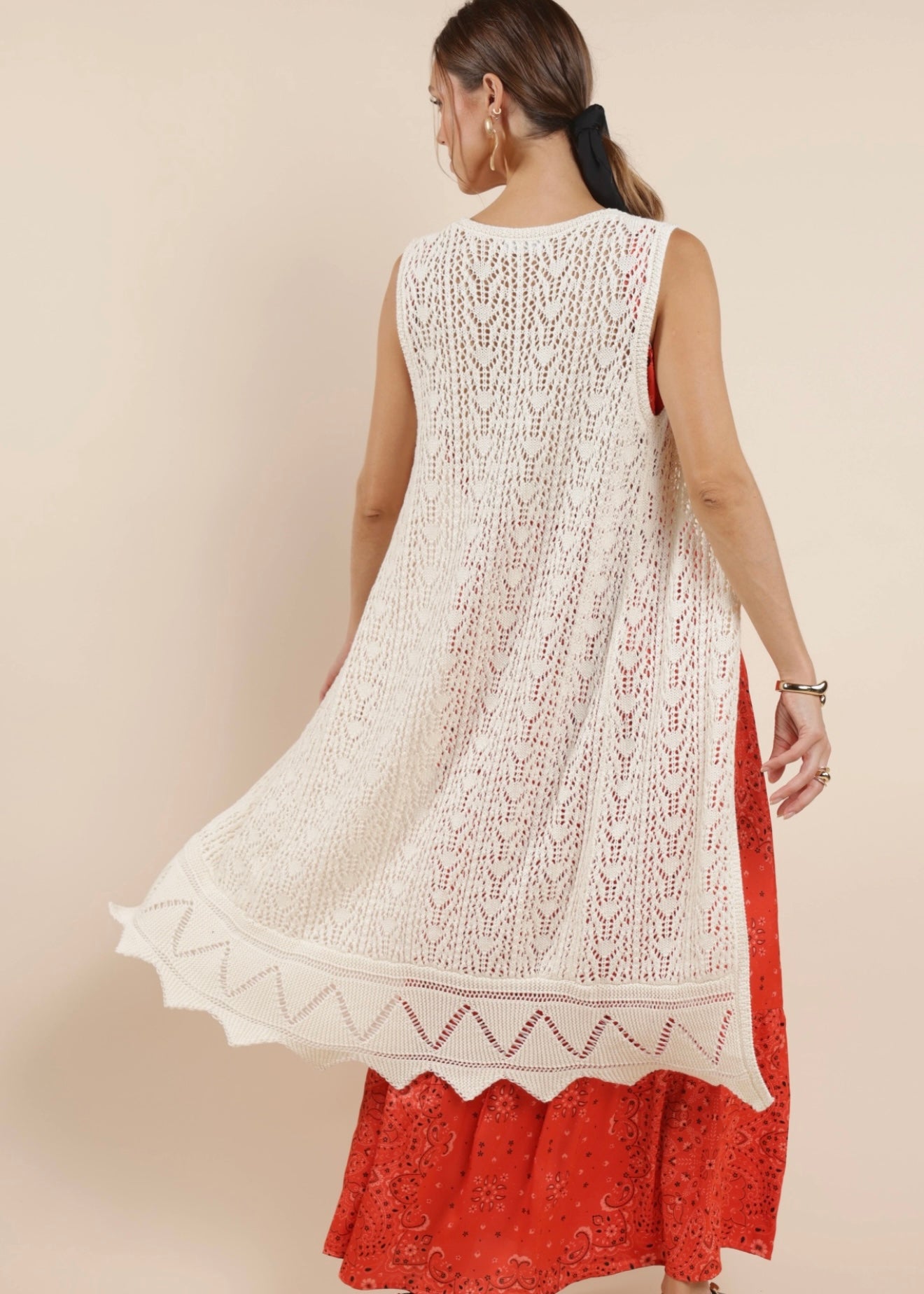 Add effortless boho flair to any outfit with the Sage the Label Tatum Crochet Duster Vest. Made from 100% cotton, this open-knit layer is perfect for pairing with dresses, rompers, or shorts for an easy, breezy summer vibe.